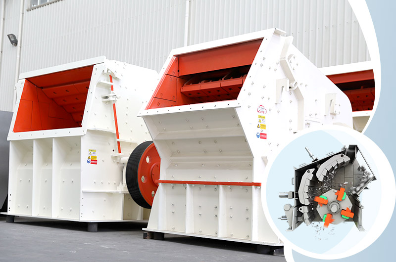 反击破是用在鄂破之后对石料细碎处理,能粉碎800mm左右的石子,特别是中等硬度石头细碎效果好,若是粉碎硬度高的石头也可以,只不过反击破锤头易磨损,更换频率就会高点,一般在砂石场配置的一套石子粉碎机设备用于粉碎软料比较多。