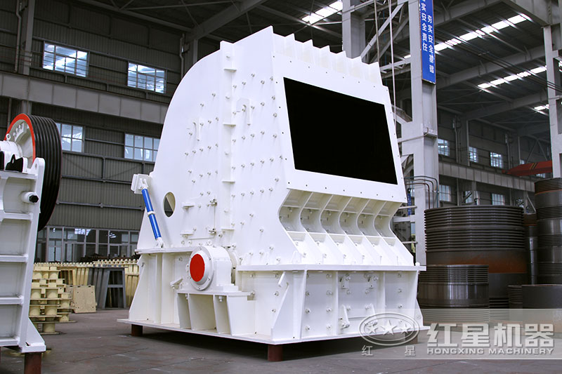 大块煤矸石经料仓由振动给料机均匀喂料,输送到颚式破碎机进行粗碎,粗碎后的煤矸石经由皮带输送机输送至反击式破碎机或圆锥破碎机进行中细碎;